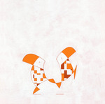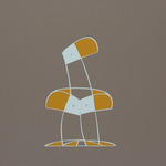 2008Schilderij van een pyramide van drie Duikertjes die op elkaars hoofd staan. Het schilderij is in negatief (de lijnen zijn licht en de achtergrond is donker). De gebruikte kleuren zijn grijs oranje en creme.