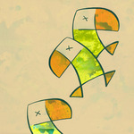 2008Schilderij van twee duikertjes die bij een ander duikertje weg springen met de kleuren groen en oranje