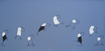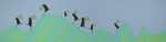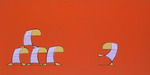 Deze grafisch weergegeven vogels zijn geïnspireerd op de papegaaiduiker. Het beestje teruggebracht tot een paar gebogen lijnen. De duikertjes hebben vrolijk gekleurde lichamen waar soms de wonderlijkste structuren en streeppatronen op te zien zijn. De eigenwijze vogels springen, stappen en duiken in het rond op de doeken. De humor spat er af!