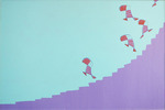 2008Een groen met paars schilderij van een groep Duikertjes die van een trap afgesprongen komen.