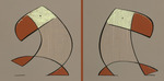 2008Tweeluik van twee grote bruine Duikers. De maat per stuk is 39 x 39 cm. De gebruikte kleuren zijn Bruin, grijs en taupe. De lijsten zijn ongeveer dezelfde kleur als de snavels van de Duikers.